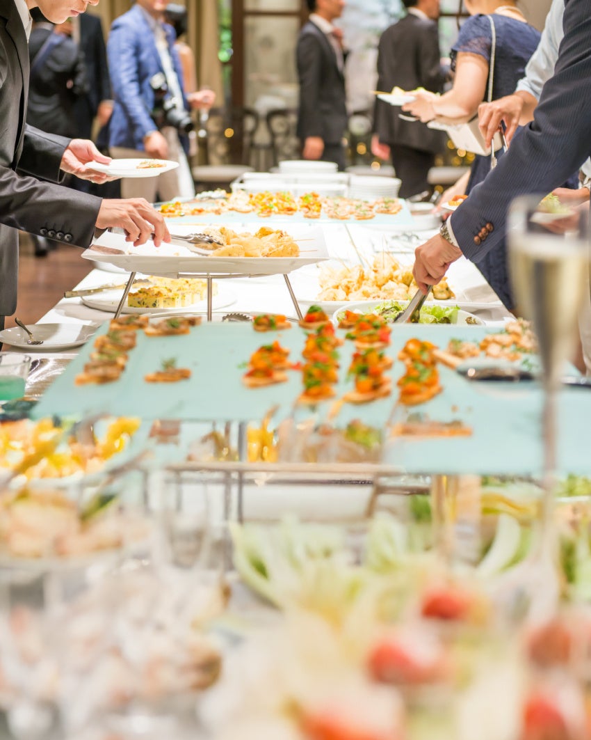 ゲストとの会話も弾み、和やかな雰囲気の中でリラックスして食事を楽しむことができる人気のスタイル。自分の好みに合わせて好きな料理を自由に選べるのも、ゲストに喜ばれます。