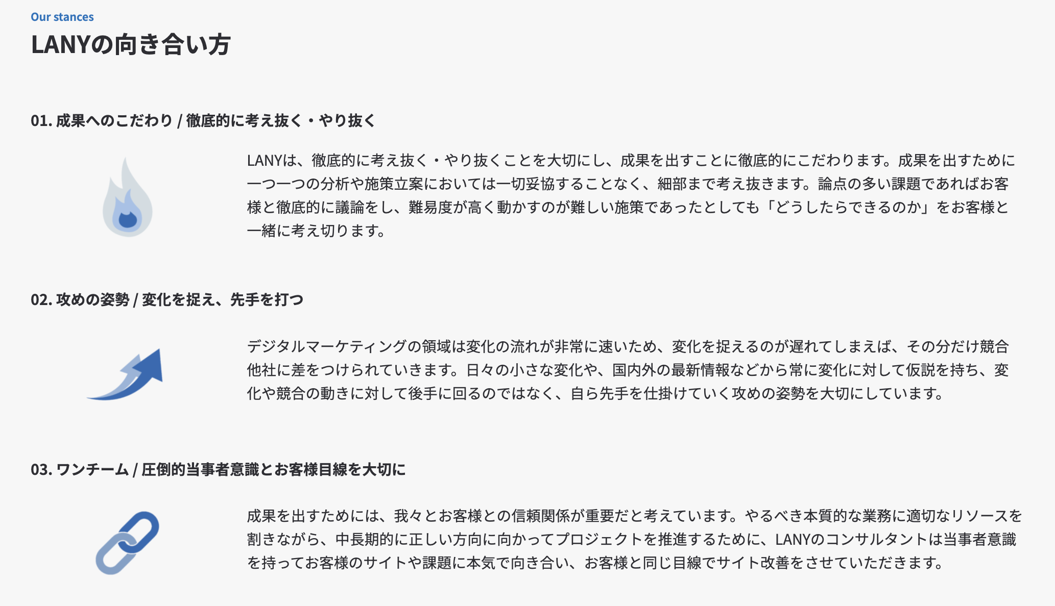 LANYがお客様にどのように向き合っているのかがわかるコンテンツを追加いたしました。具体的には下記の3点になります。