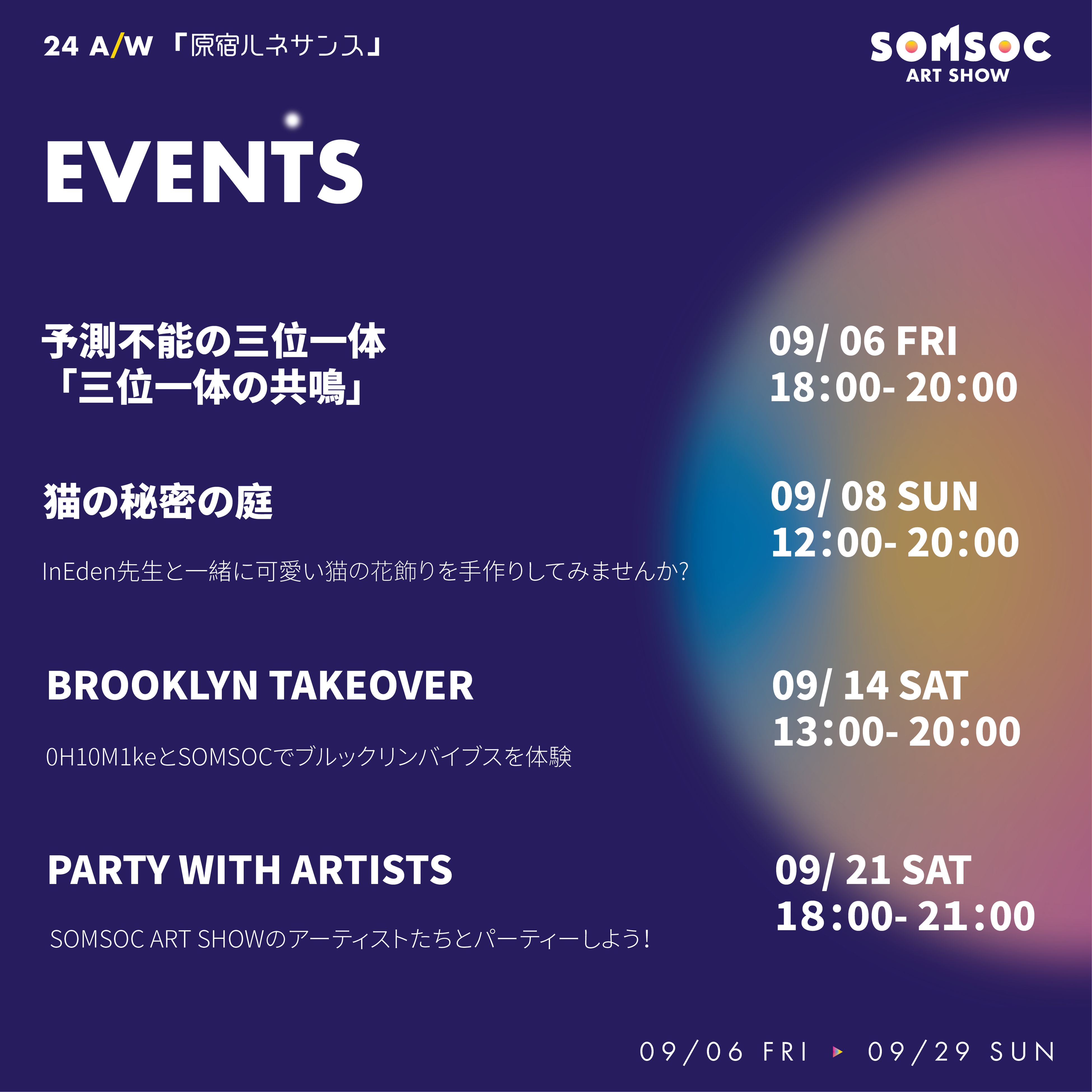 原宿ルネサンス!半年に一度のアートフェア『SOMSOC ART SHOW 24A/W』開催!9月6日(金)~9月29日(日)まで