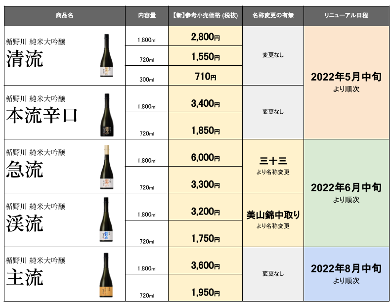 日本酒「楯野川」、定番5商品をリニューアル/一部商品の名称変更及び価格改定を実施