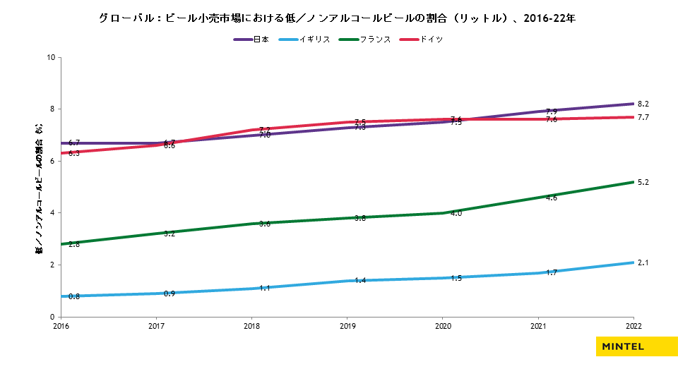 お酒好きなイメージのドイツやフランスでも低/ノンアルコール飲料消費量は増加