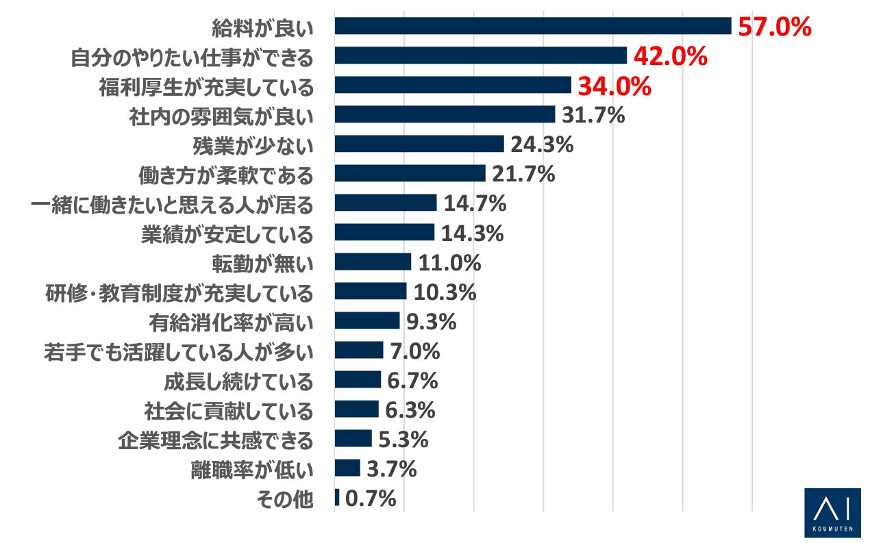 また、「飲み会の参加を強要されない」、「個性を大切にしてくれる」、「性別で差別されない」など、多様な生き方・価値観を認め合うZ世代ならではの回答が多くみられました。