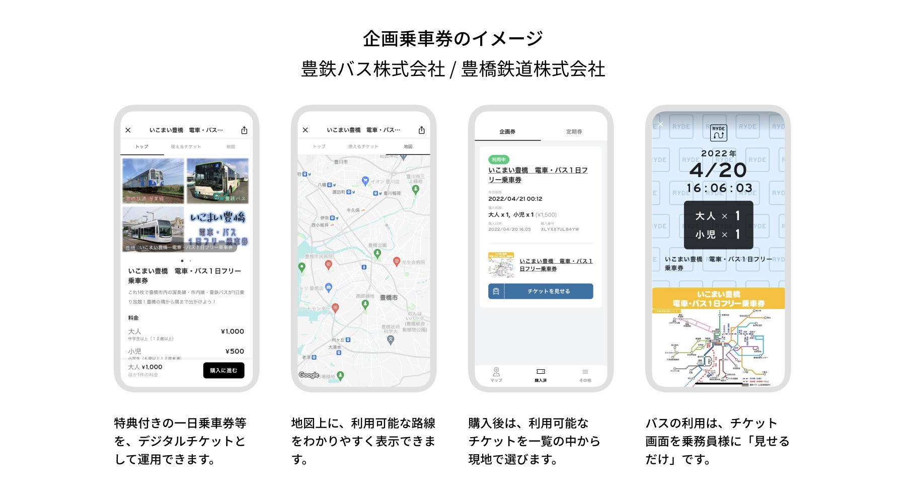 二次交通のDXを推進するRYDE株式会社(本社:東京都渋谷区、代表取締役 杉崎正哉、以下「RYDE」)と豊橋鉄道株式会社及び豊鉄バス株式会社(共に取締役社長 小笠原敏彦/豊橋鉄道:豊橋市駅前大通一丁目46-1、豊鉄バス:豊橋市植田町字新津田38番地)の3社は提携を開始しました。提携に伴い、デジタル乗車券「いこまい豊橋 電車・バス1日フリー乗車券」及び「豊鉄バス1日フリー乗車券」の販売を4月28日(木)から開始します。