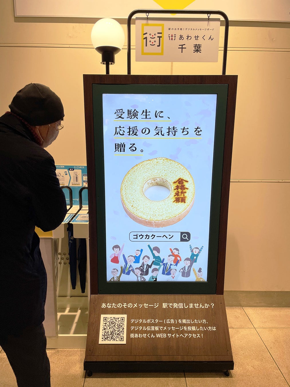 「ゴウカクーヘン」の広告は「デジタルポスター」機能を活用し、「受験生に応援の気持ちを贈る」のキャッチコピーとともに、商品画像を掲載しています。
