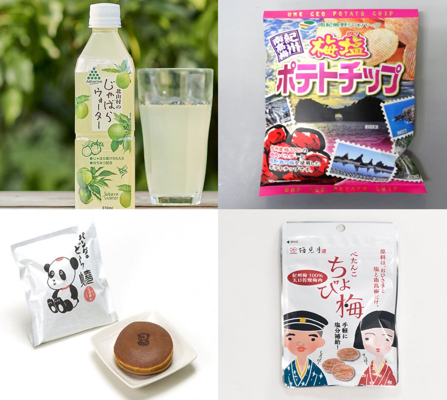 | 紀州南高梅カリカリ甘梅 | ぺたんこちょび梅 | パンダのどら焼 | 白炭クッキー |