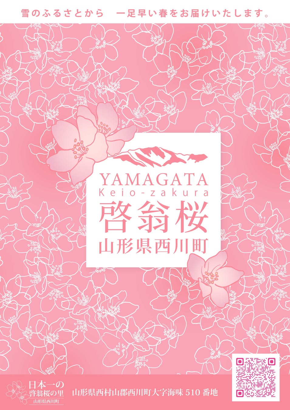そして4月5日(土)・6日(日)には、啓翁桜の園地見学をはじめ、山菜収穫体験や雪の回廊巡り、フラワーアレンジレッスン、郷土料理のお食事など、西川町をフルコースで満喫いただける1泊2日の花めぐりツアーを実施します。