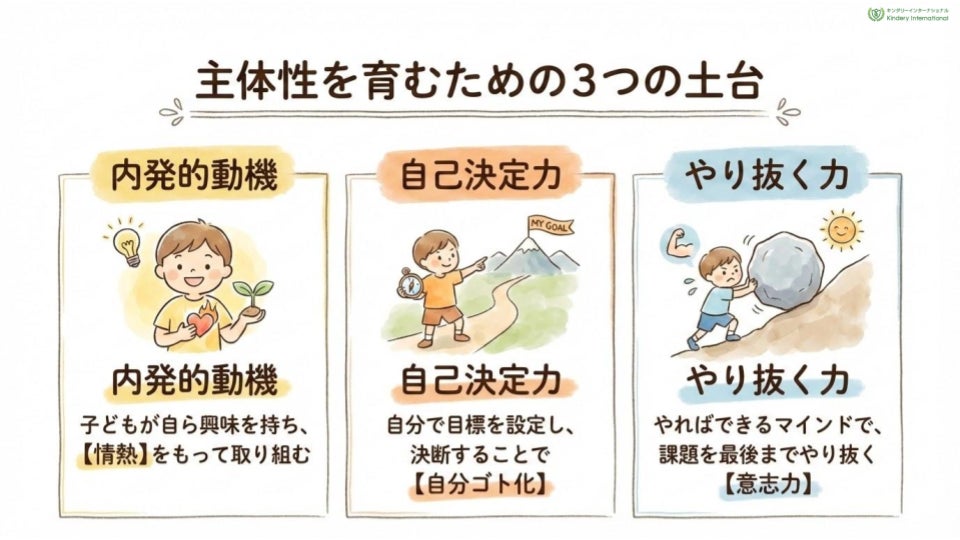 未来が予測困難なAI時代において、社会では未知の課題に挑み、新しい価値を創出できる人材が求められています。その基盤となるのが、お子さんたちの「主体性」です。