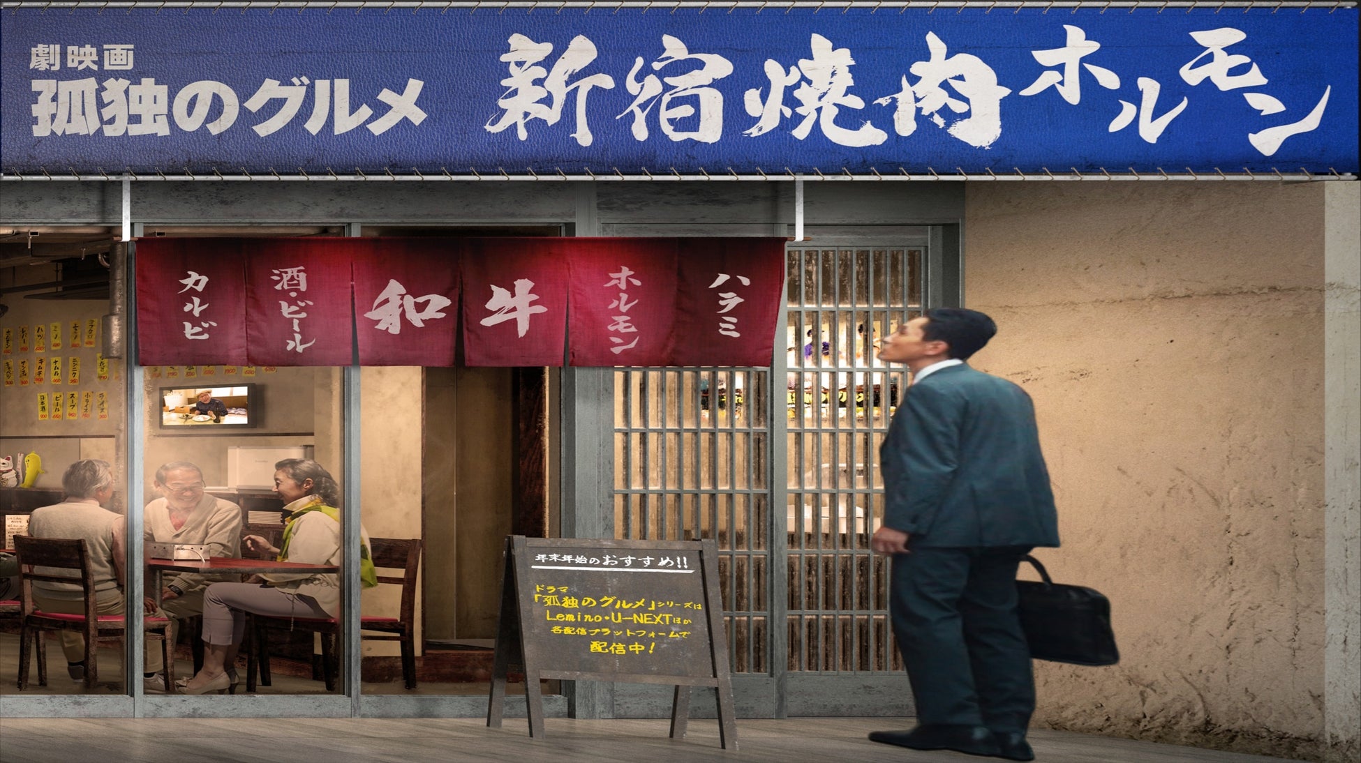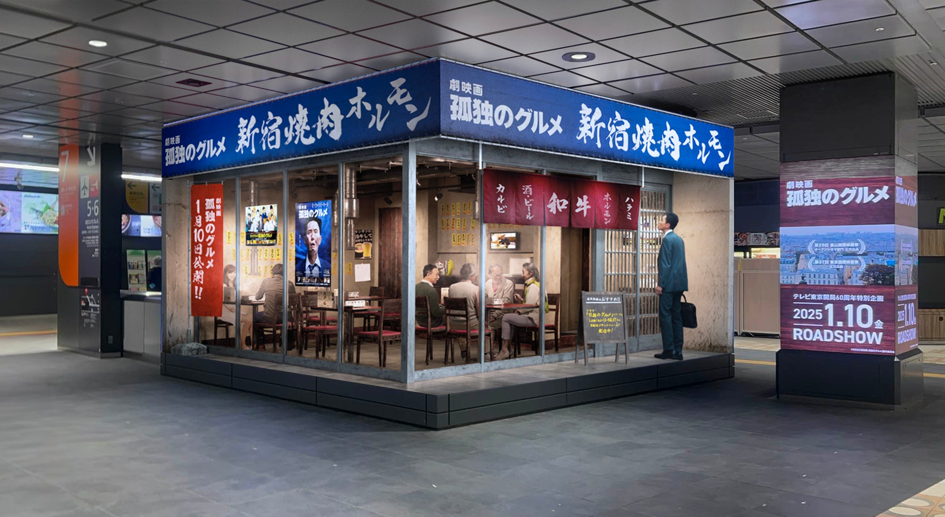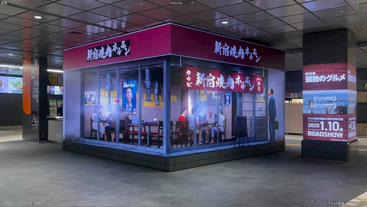 株式会社CGworks(東京都渋谷区代々木)は、2025年1月10日(金)公開、【劇映画 孤独のグルメ】 のプロモーション用の3D屋外広告のCG制作を担当いたしました。架空の焼肉店のビジュアルを制作し、新宿駅構内に実店舗が出現したかのような3D屋外広告のCG演出をいたしました。