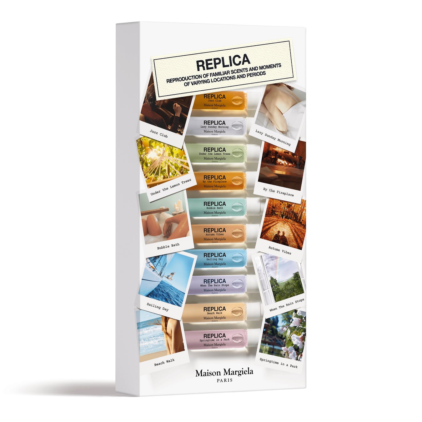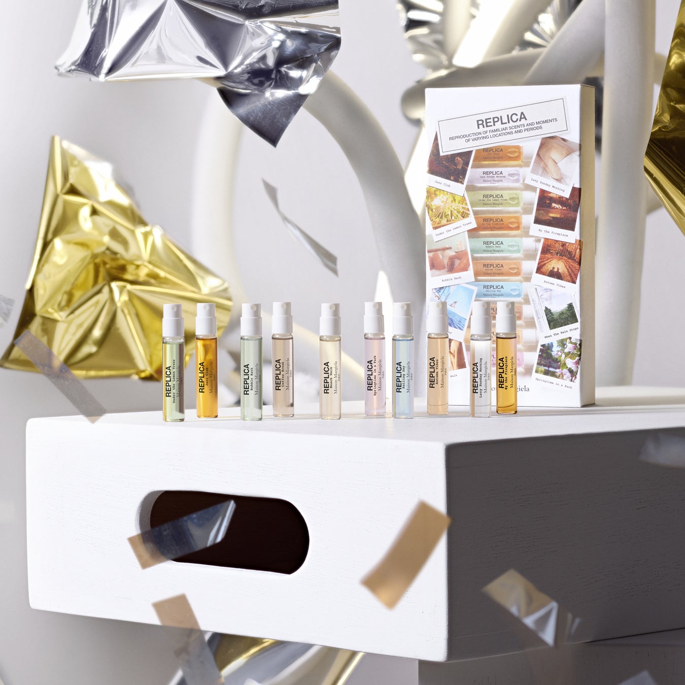 ・「レプリカ メモリー ボックス」は、「レプリカ」を代表する10種類のオードトワレを少量ずつ(2mL)試せるセット。