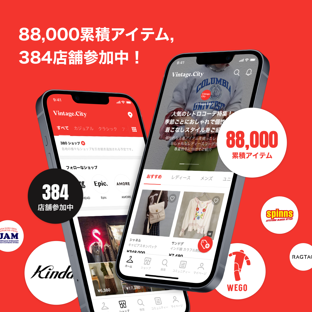 NAVER J.Hub Corporation(本社:東京都品川区)は、株式会社リアルコマース(本社:東京都品川区)が運営代行を行う日本初のヴィンテージ・ファッション・アプリ「Vintage.City(ヴィンテージ・シティ)」にて、アプリローンチから約1年半で累計80万ダウンロードを達成いたしました。また、掲載店舗数は384店舗、及び88,000アイテム数が登録され、Instagramのフォロワー数が3万7千人となりました。80万ダウンロードを記念して、近日中にキャンペーンを実施する予定です。