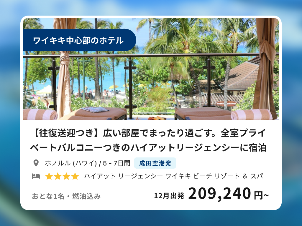 【往復送迎つき】全室プライベートバルコニーつきのハイアットリージェンシーに宿泊