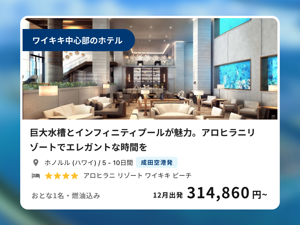 巨大水槽とインフィニティプール!アロヒラニリゾートでエレガントな時間を
