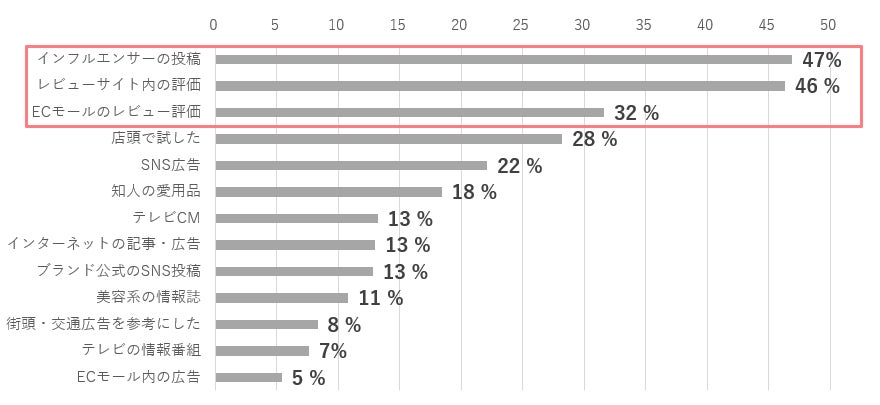 ECでの購入は「インフルエンサー」「レビュー評価」が重要