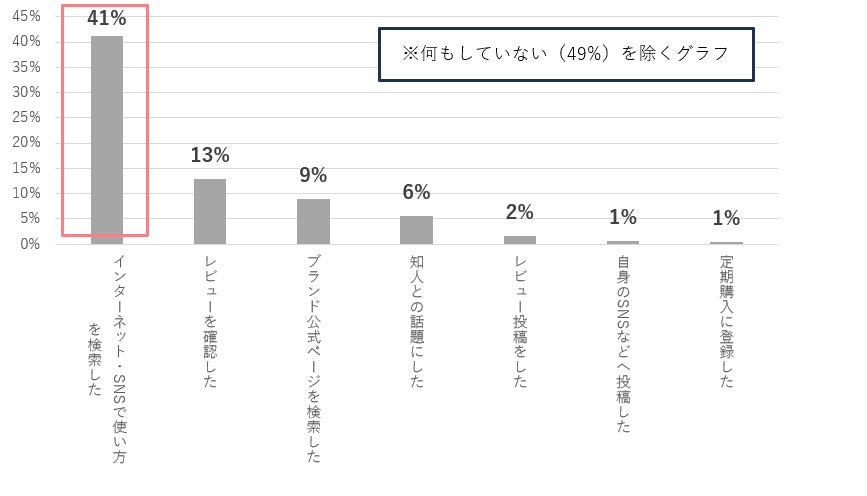 ■4割以上がアイライナー購入後の行動として、SNSなどから「使い方」を検索。