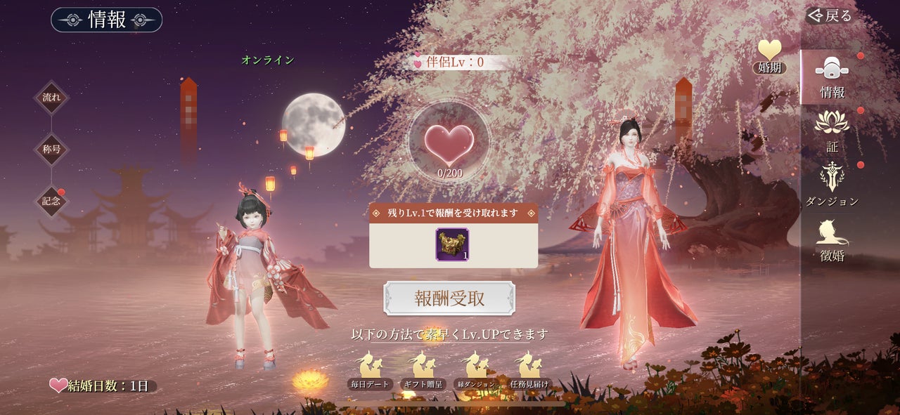 注. 「婚礼」を行うには、霊玉を支払う必要があります