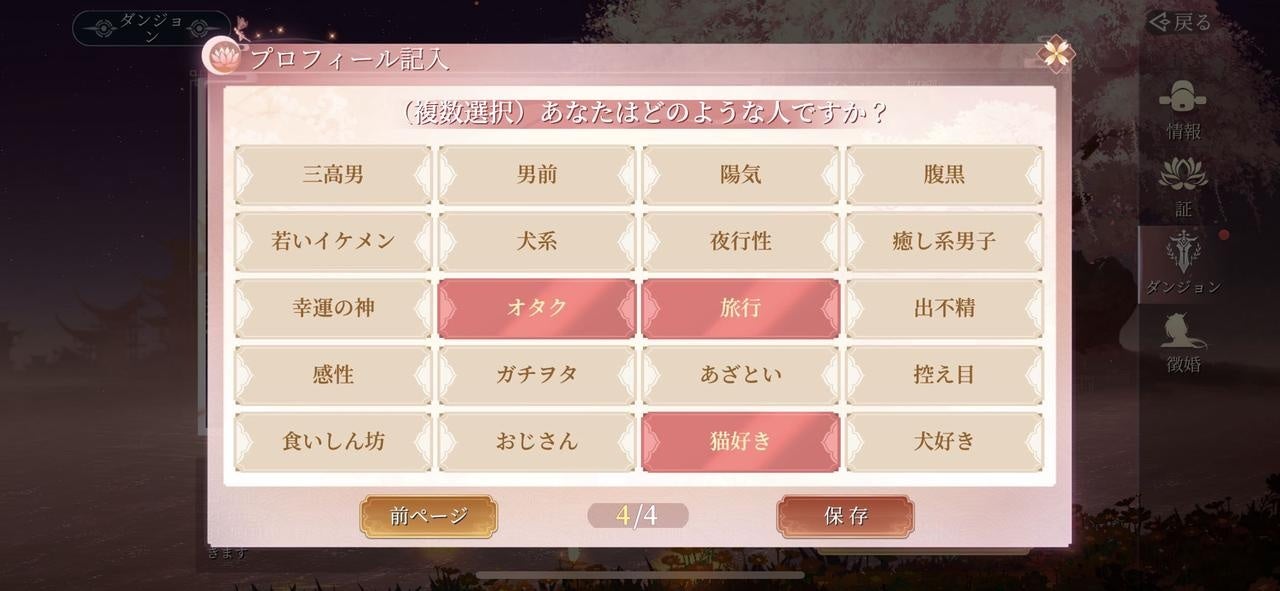 もちろんゲーム内のことなので、理想の自分を記入しても、正直に選択してもOK!