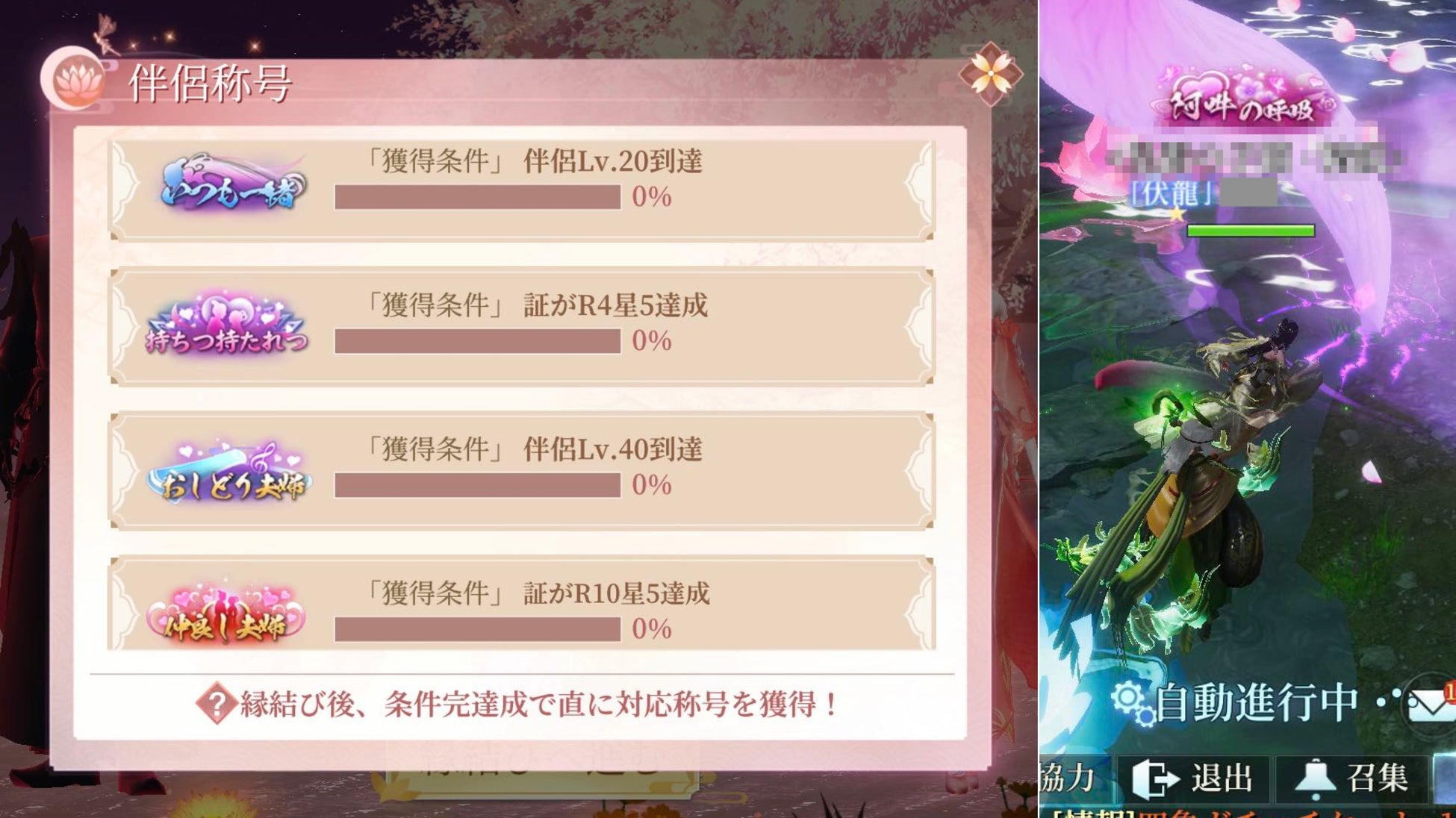 縁結びダンジョンは伴侶または異性フレンドと一緒に参加することができ、規定時間内にクリア層数が多いほど、報酬が多くなります。