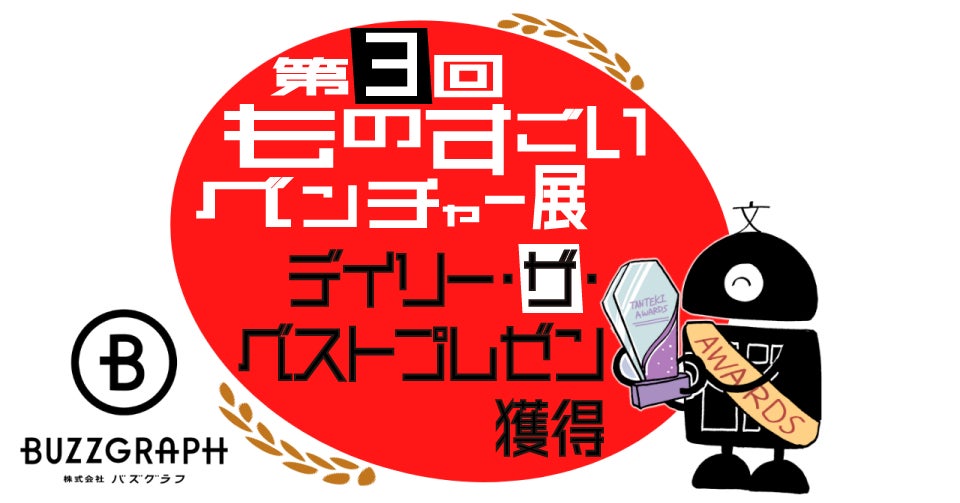 独自の自然言語処理AIを駆使した「文章要約AI タンテキ」を展開する(株)バズグラフは、5月20日に登壇したものすごいベンチャー展にて「デイリー・ザ・ベストプレゼン」に選ばれました。