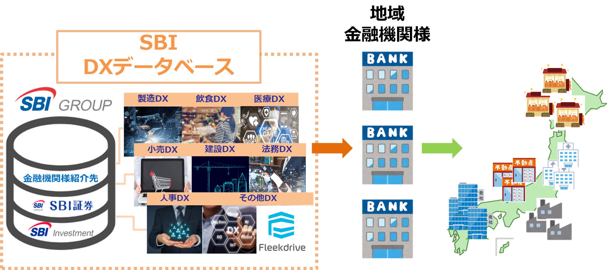 「SBI DX データベース」は、SBIグループがベンチャー企業投資などを通じて培ったネットワークを駆使し、中小企業のDX化に資するソリューションを幅広にラインナップ化したサービスで、企業はニーズに応じた最適なDXソリューションに容易にリーチが可能となります。提携する地域金融機関と協働で、全国の地域企業へのサービス浸透を図っています。