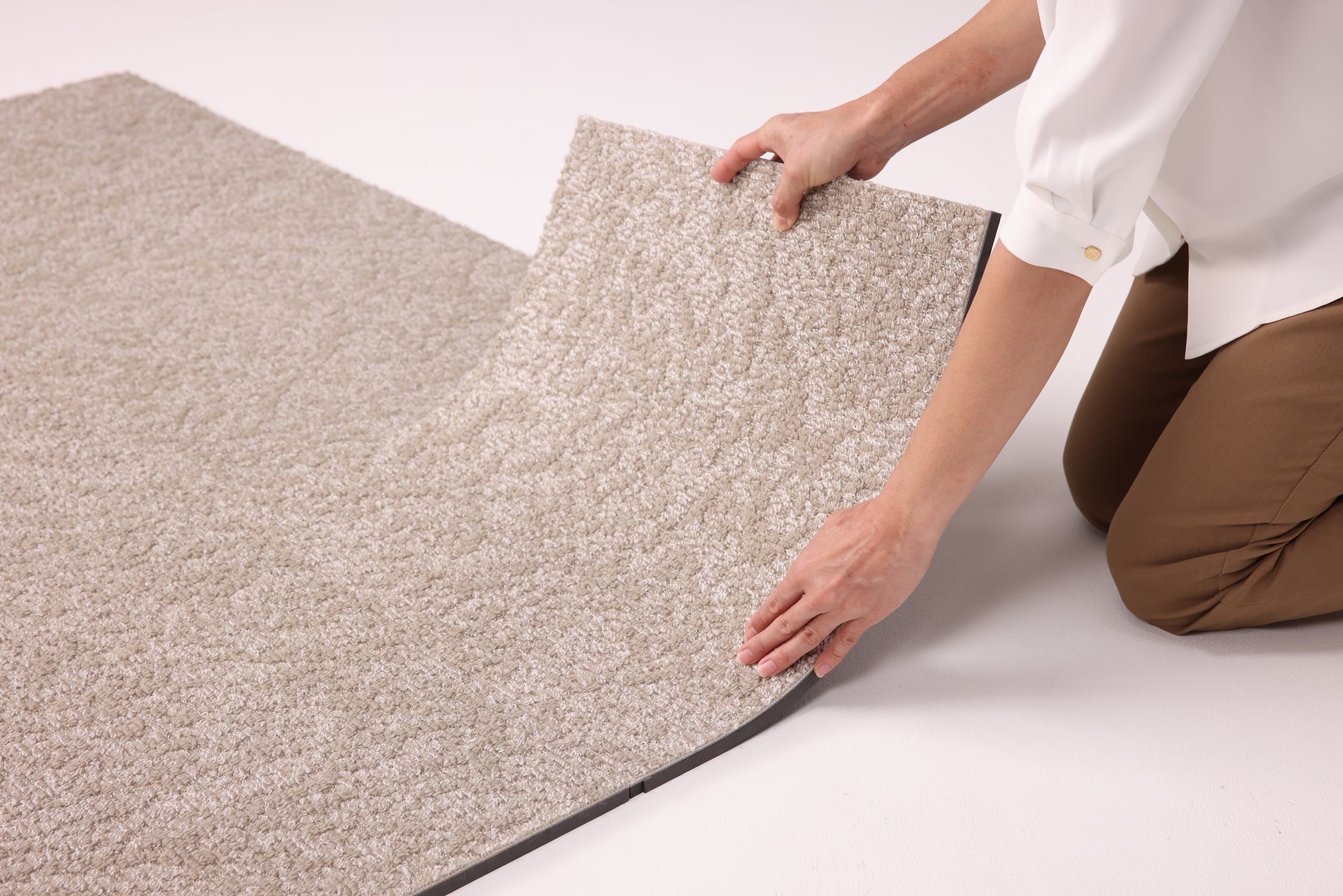冬でも足裏が冷えにくく、インテリアにもなじんで美しくて気持ちの良い手触りの、撥水性のあるカーペットタイプと、液体などの汚れがしみ込まず、お掃除も簡単なビニールシートタイプの2種類から素材を選ぶことができます。