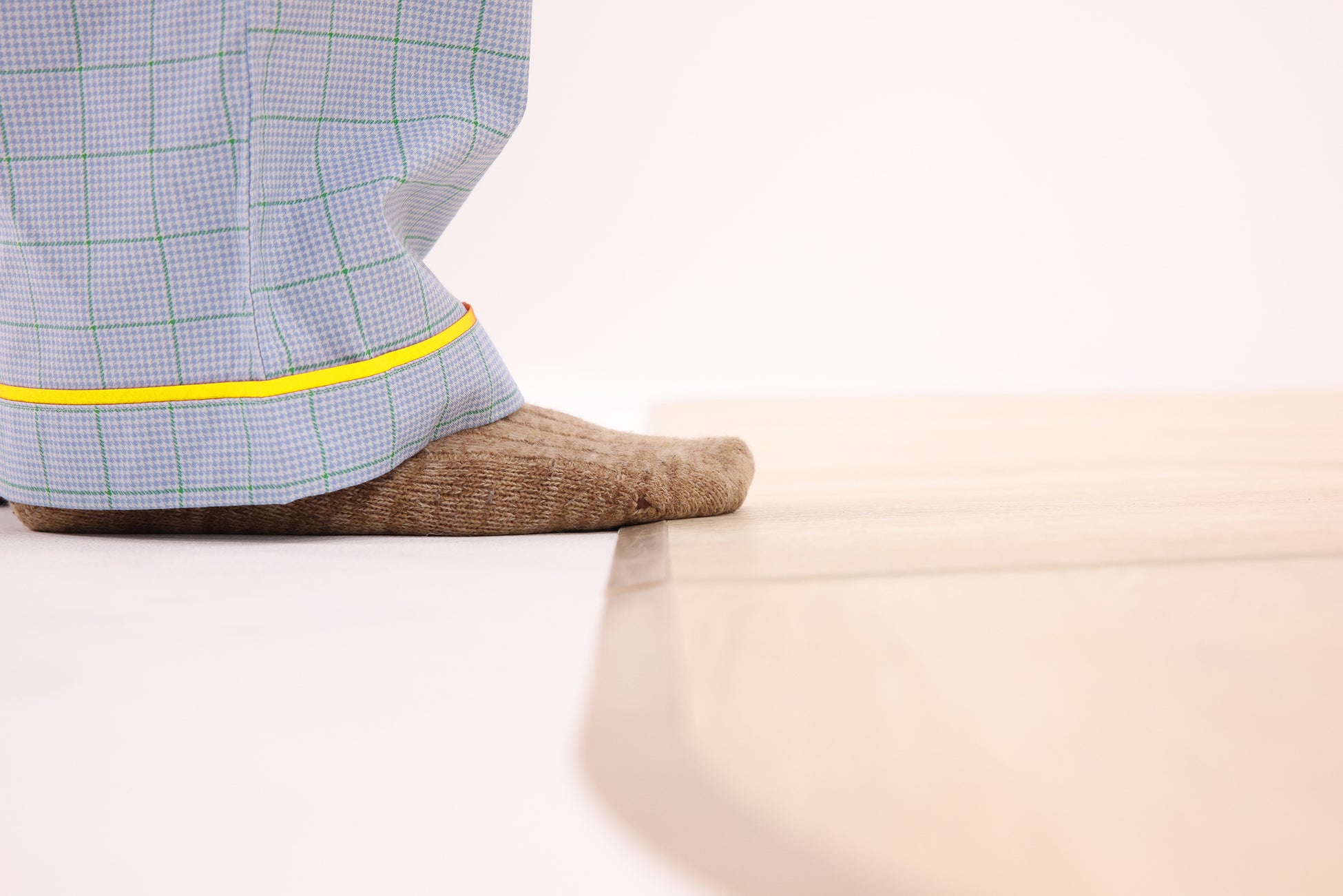 「ころやわ」は、これまで両立が困難とされていた「歩行快適性」と「衝撃吸収性」という2つの性質を合わせ持つ、今までにない構造を採用した、転んだ時には凹んで衝撃を低減しつつ普段は快適に歩ける新しい床材です。歩行困難に陥りやすい大腿骨の骨折は、高齢者の場合、221kgf以上の荷重がかかると発生するといわれています。「ころやわ」を敷くだけで150kgf程の荷重に低減でき、大腿骨の骨折リスクは大幅に低減します。