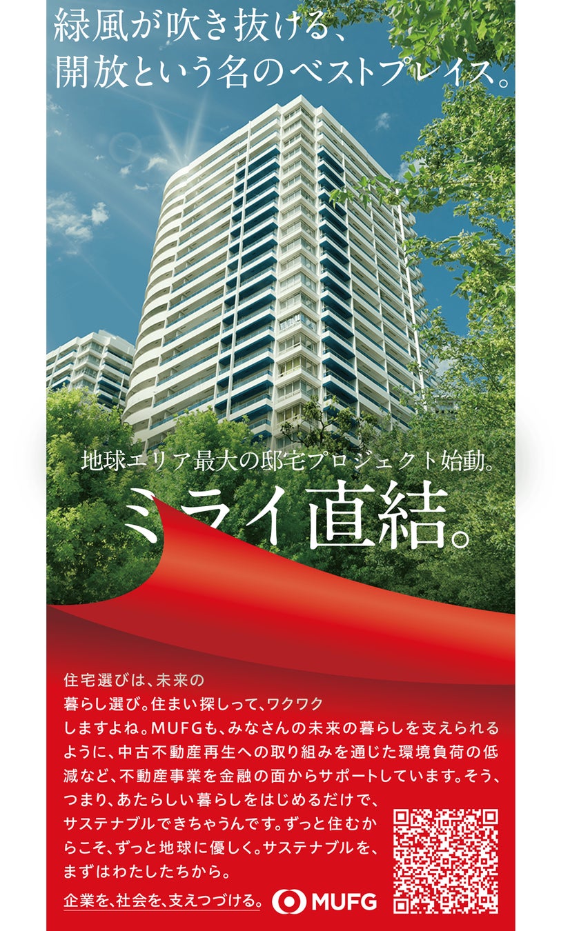 【MUFG】 金融がお客さまと共にめざすカーボンニュートラル。「企業を、社会を、支えつづける。」MUFGの新聞広告を掲載!広告の裏にMUFGがいる?