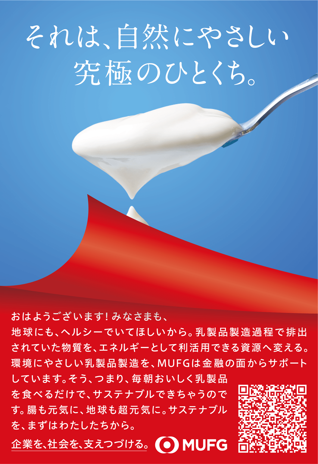 MUFGは、乳製品製造過程で排出される副産物を、再生可能エネルギーとして利活用できる資源へ変える為の設備導入など、乳製品業界のサステナブルな製造活動を金融の面から支援しています。