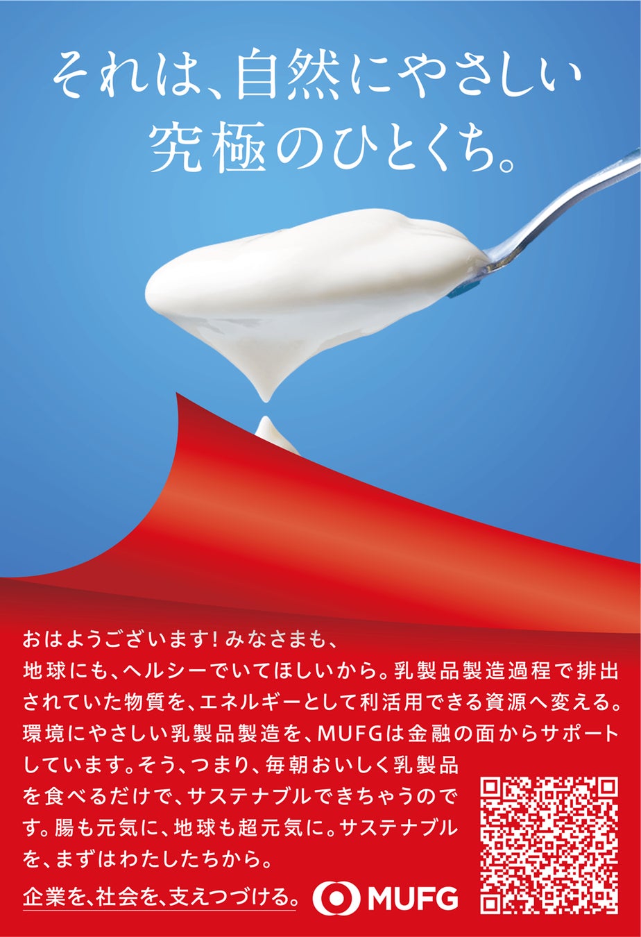 また、MUFGは、社会やお客さまの課題に寄り添いながら共に活動を行うことで、世の中のチカラになることができると考えています。そこで、投融資先企業のサステナブルな取り組みを金融面で支援することで、MUFGがカーボンニュートラルな社会の実現を推進していることを発信すべく、昨年12月より公開しているムービー「サステナブルしちゃう日。~ Sustainable Moments」[1]に続いて、新聞広告を掲出します。