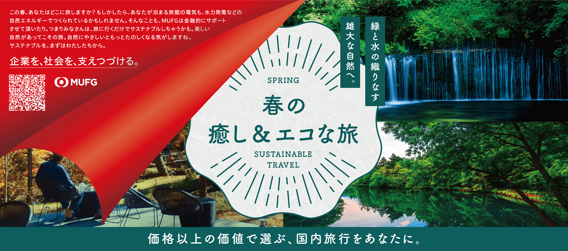 MUFGは、自家水力発電所の設置や照明器具のLED化を通じた環境負荷の低減など、サステナブルな宿泊施設の運営を金融面から支えています。