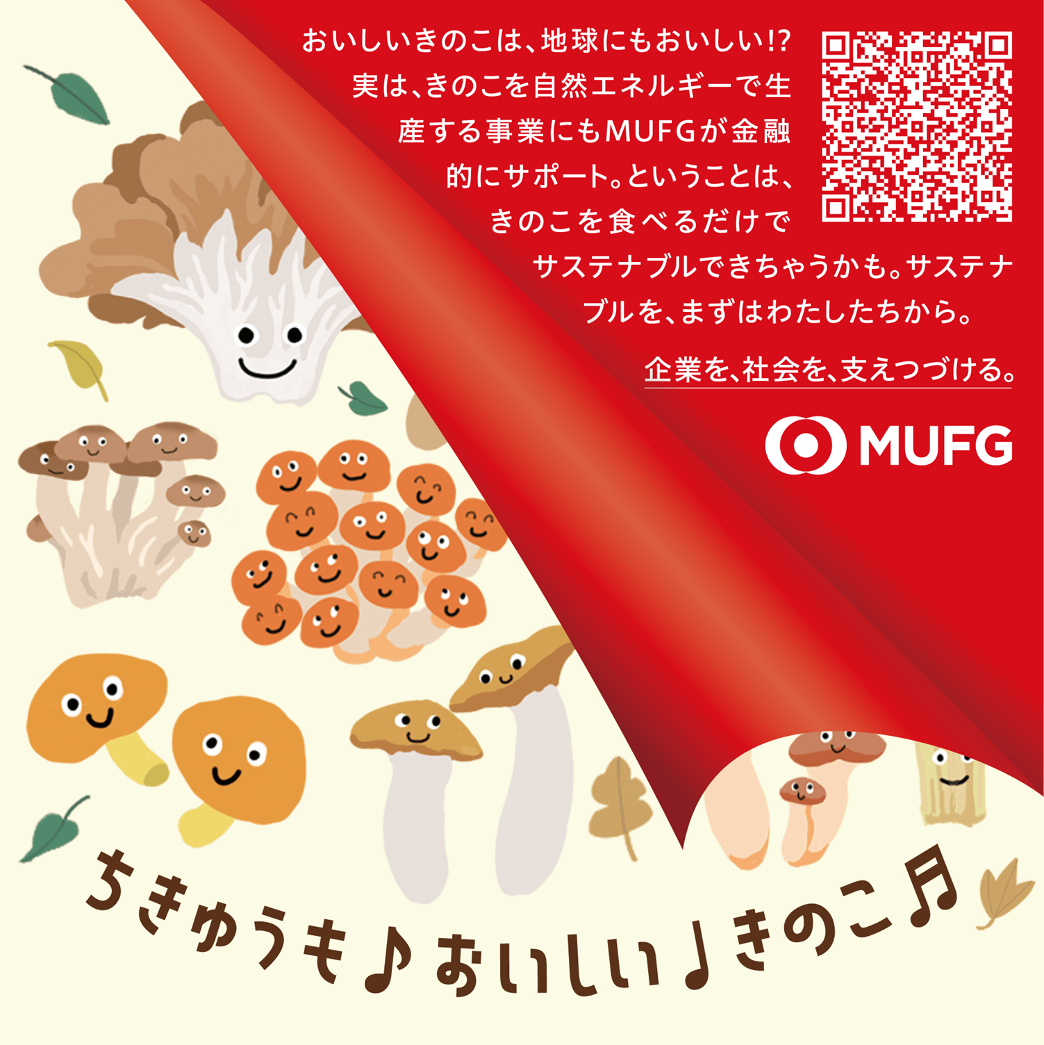 実は、きのこを自然エネルギーで生産する事業にもMUFGが金融的にサポート。