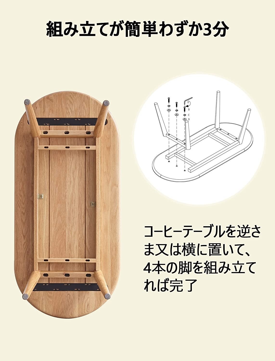 復雑な組立手順を必要とせず、組み立てが簡単で、天板に四本の脚と板をねじで締めるだけ完成できます。初心者でも一人で完成できます。それに。脚も無垢材を採用するので、揺れなく安定感が強くて、耐久性も良いです。