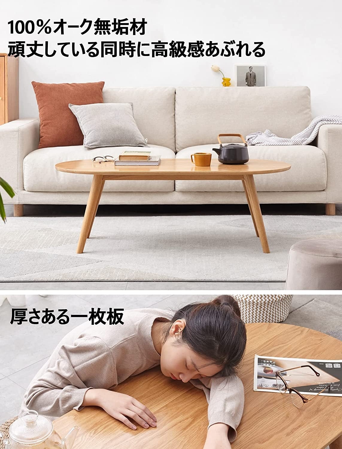厳選された北米産の100%オーク無垢材を使用し、自然の木をそのまま使用しているので、唯一無二の柄を楽しむことができます。木目を生かしたものは和室にもよく合いますし、フローリングの色と合わせれば一体感が出て部屋をすっきりした印象にできます。生活の空間においては無垢材の香りや目にやさしい光を和らげる効果などもあります。ほかの材料と違って、無垢材には、私たちの生活を守ってくれる優しさがあります。家庭用のセンターテーブルとして大変おすすめします。