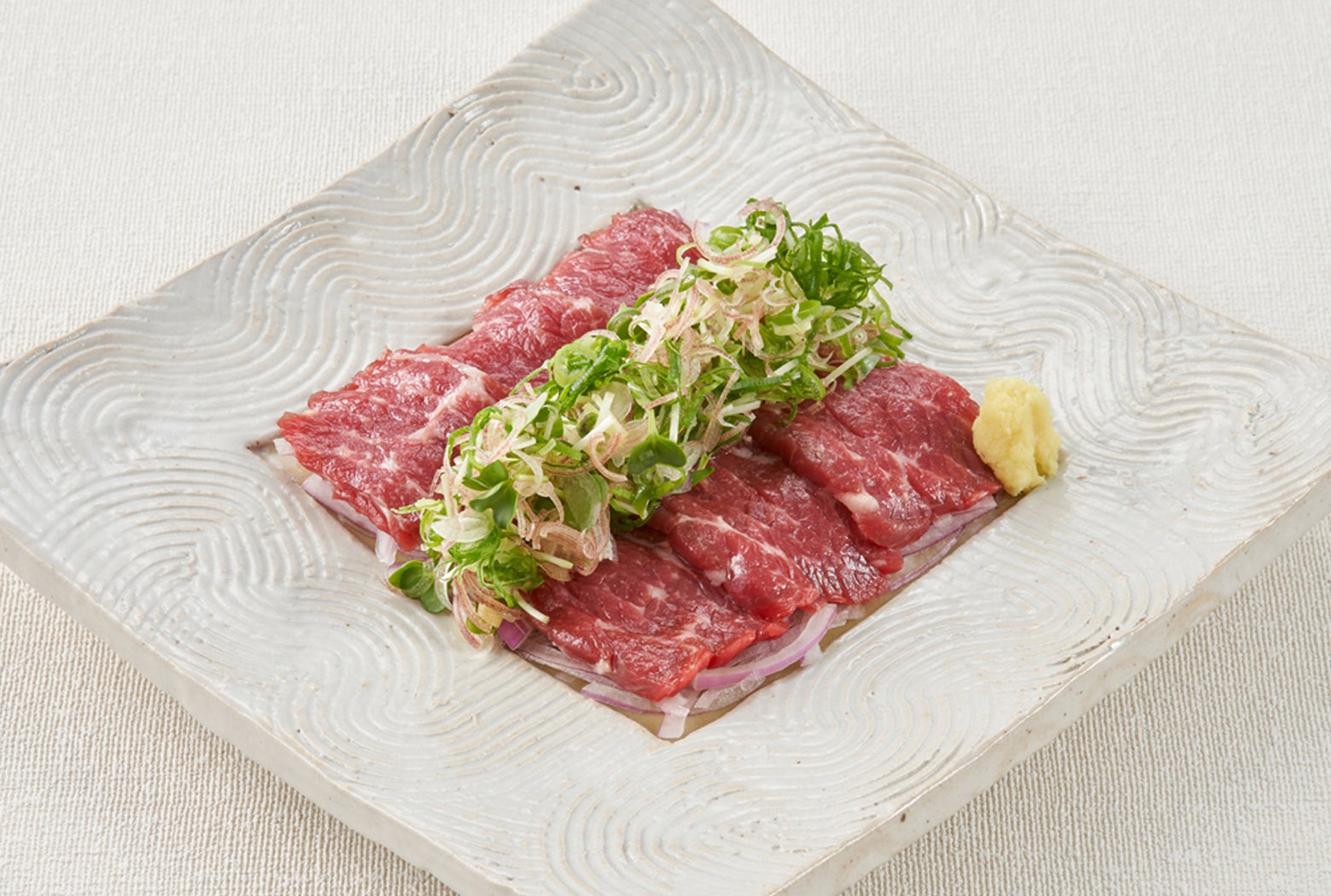 臭みのない馬肉をたっぷりの薬味と共にお召し上がりください。