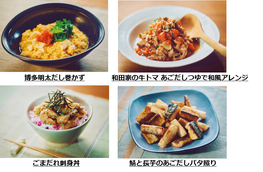 料理が苦手な人や、時間が無い人にも作りやすいあごだしつゆを使った和田さんオリジナルレシピをご紹介。忙しい毎日の中でも、家族との何気ない日常を大切にしたいという和田さんの想いと、そんな方をおいしさで支えたいという当社の想いが込められています。