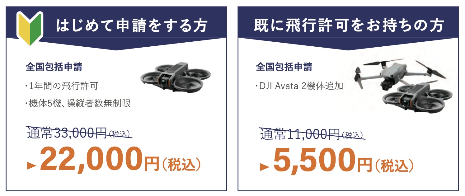 国内初販売で話題のFPVドローン「DJI Avata 2」の発売を記念し、機体を購入すると飛行許可申請の代行をおトクに利用できる特別キャンペーンを実施中(期間限定)。
