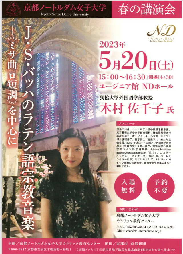 京都ノートルダム女子大学 カトリック教育センター主催「春の講演会」