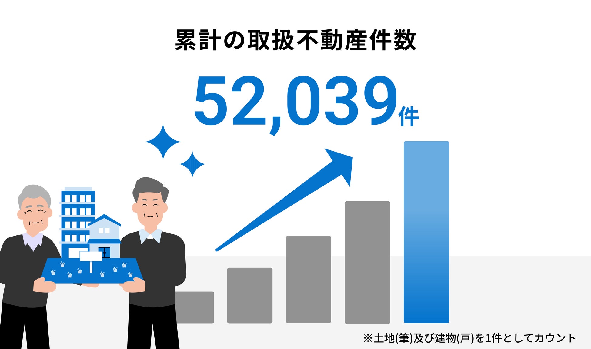 累計取扱不動産件数: 52,039件を突破(土地および建物を1件としてカウント)