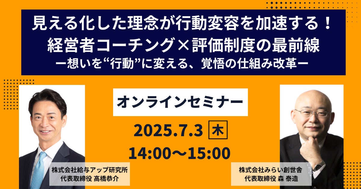 株式会社給与アップ研究所 × 株式会社みらい創世舎理念と現場を“つなぐ”評価制度とコーチングの最前線を公開。参加特典あり・無料開催