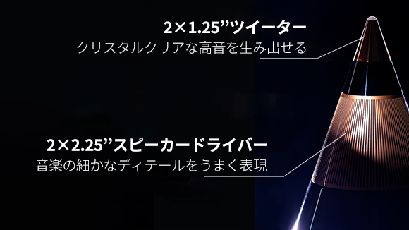 スピーカーの機能はもちろん、LEDによる照明効果もインテリアに上質な雰囲気を作り出します。