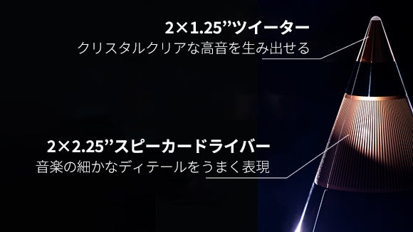 低音のパワー感をさらに引き出し、これまで以上に驚くほどの深みを感じさせる重低音再生を実現。強力なドライバーと組み合わせることで、最低20Hzまで落とすことに成功しました。
