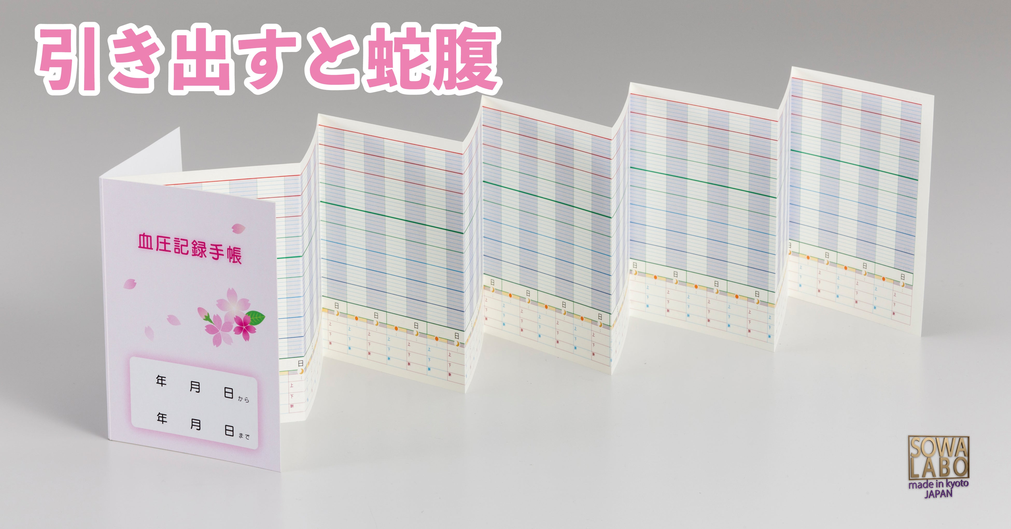 『墨が裏面に染み出ない御朱印帳』を手掛ける早和製本株式会社(SOWALABO)(本社:京都市南区)は2026年3月25日より、約100センチメートルのロングでワイドなグラフで血圧変化を可視化する「パノラマ血圧記録帳」の予約受付を開始します。