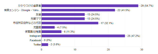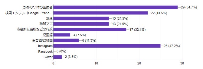 かかりつけの歯医者に聞くという回答が最も多いですが、手軽に情報収集できるインスタグラムや検索エンジンも多くのママ・パパに利用されていました。まずはSNSなどで検索し、最終的に歯医者へ相談する動向が見られました。