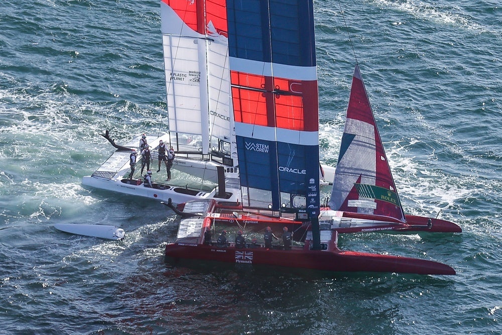 セールGPの規則では、イベント・オーソリティは相手の過失によりダメージを受けたチームがレースに出場できるよう、同程度の装備を代用または割り当てることができることになっています。イベント・オーソリティは現在、イギリス艇の損傷状況を調査し、日本がレースに出場するためにイギリスの装備の一部を代用することが可能かどうかを確認しています。ベン・エインズリーとイギリス・セールGPチームは、明日のレースで日本がレースに復帰できるよう、艇を含む必要なサポートを提供する予定です。