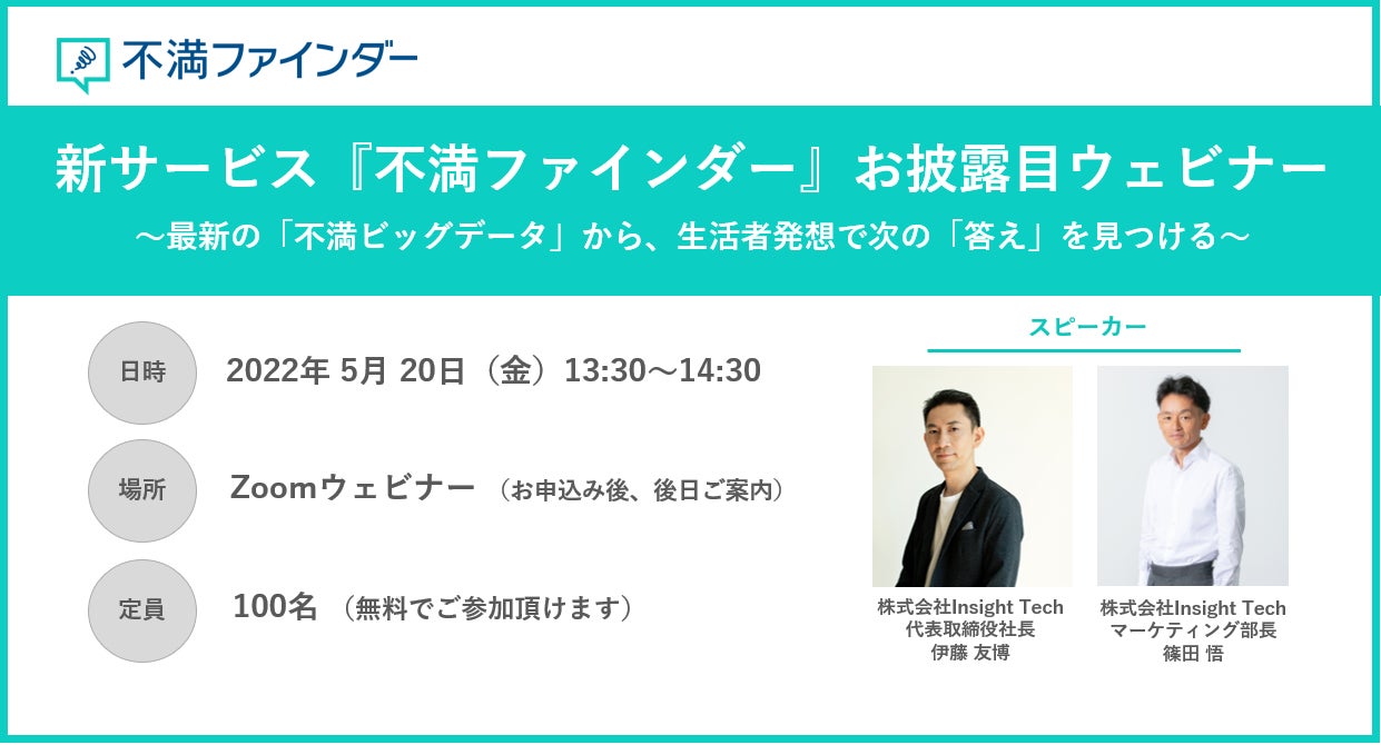 【生活者の不満ビッグデータを解析するSaaS】新サービス『不満ファインダー』お披露目ウェビナーを5/20に開催