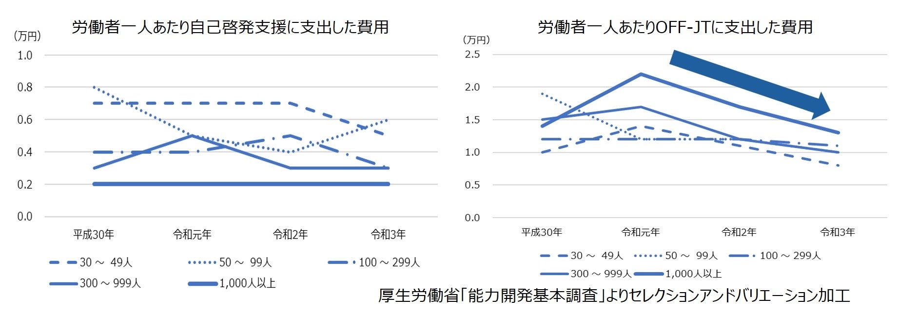 厚生労働省「平成29年~令和3年能力開発基本調査」より分析を実施。