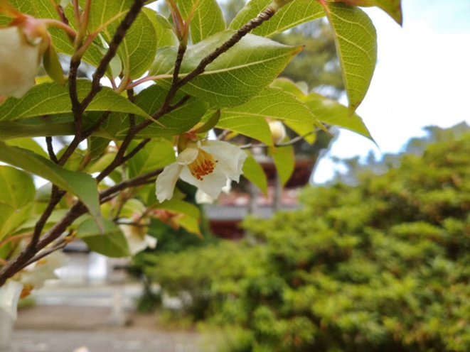 雨が続くこの時期に、愛らしい白い花をパッと開かせる沙羅の花。