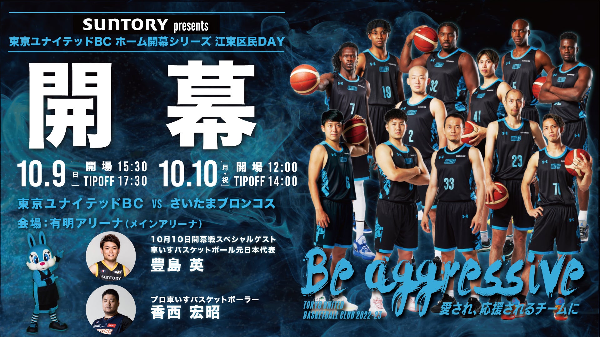 【10月10日ホーム開幕戦】スペシャルゲストに車いすバスケットボールの豊島氏、香西選手来場のお知らせ