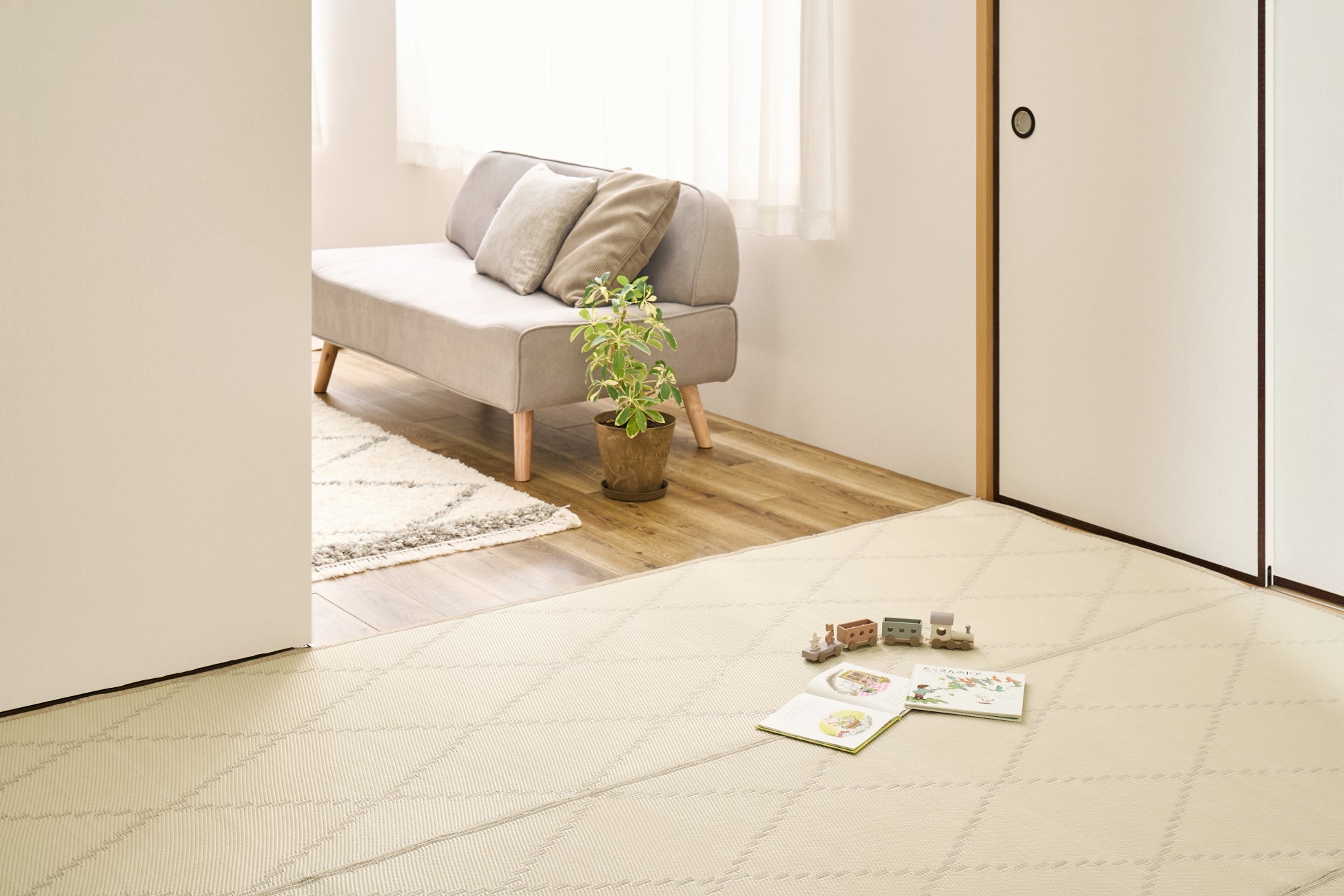 そんな和室のイメージを一新できるのが、萩原製造所で新発売した樹脂パイプ上敷「モンド」です。