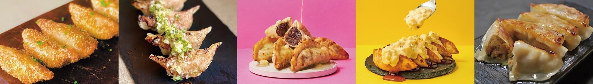 ▶︎GYOZA 【餃子とワイン 果皮と餡(北海道・札幌)】:十勝産濃厚味噌バター牛カツ餃子、旨味溢れるコリコリ牛タン餃子/【宇都宮餃子 はちまん餃子(栃木・宇都宮)】:タレが選べる宇都宮 肉汁はちまん餃子、4つの味のシャカシャカ餃子/【餃子の宮でんでん(埼玉・大宮)】:チーズのせ爆汁丸餃子、小江戸黒豚羽き付餃子/【肉処天穂(福岡・北九州)】:肉汁爆弾!佐賀牛餃子/【博多八助(福岡・高宮)】:博多八助 ひとくち餃子/【玉川精肉店(東京・不動前)】:肉屋のチキン南蛮餃子、禁断のあんバター餃子/【元祖肉玉そば越智×浅草開化楼(千葉・八街)】:謹製旨味肉汁餃子、やわとろネギと柚子の温かいスープ餃子/【京都餃子ミヤコパンダ(京都・宇治)】:さわやかに香るレモン餃子、やみつき!九条ねぎだく京餃子/【香港点心楼(兵庫・三宮)】:プリプリエビ蒸し餃子、贅沢フカヒレ餃子/【チャーハンSTAND】:特製チャーハン