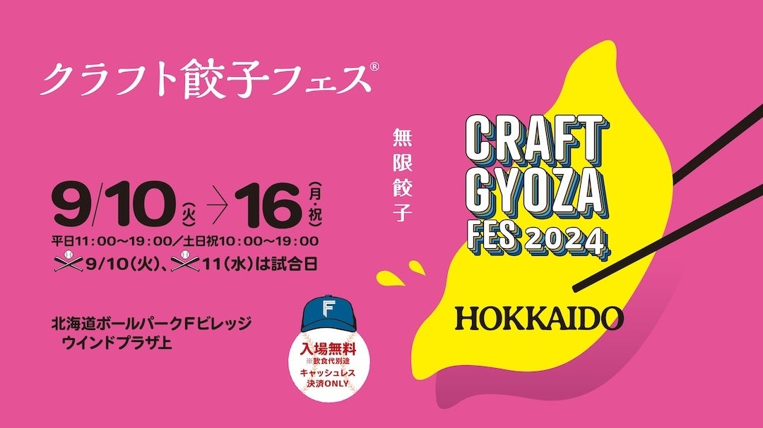 餃子の可能性とトレンドを発信する大型フードイベント「クラフト餃子フェス」(https://craftgyoza.jp)が、2024年9月10日(火)〜16日(月・祝)の7日間、北海道ボールパークFビレッジにて開催決定! 2022年にスタートした「クラフト餃子フェス」は、これまで東京・大阪・広島・福岡・埼玉と各地で開催を重ね、累計200万人以上が来場する人気イベント。バリエーションが様々な餃子の世界と無限大の可能性を持つ餃子に着目し、全国の餃子職人が精魂込めて作り上げる餃子を、“クラフト餃子”という新しいワードと共に発信します。